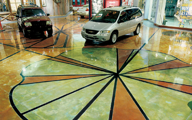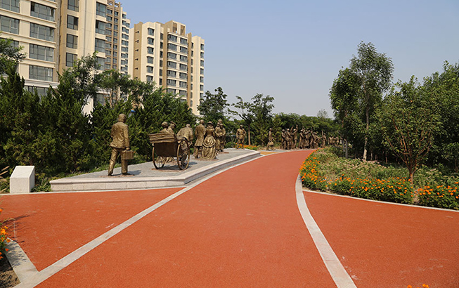 園、大型廣場以及室內外主題裝飾等多種景觀環境中都得到了充分的體現,目前擁有高承載透水藝術地坪、彩色壓印藝術地